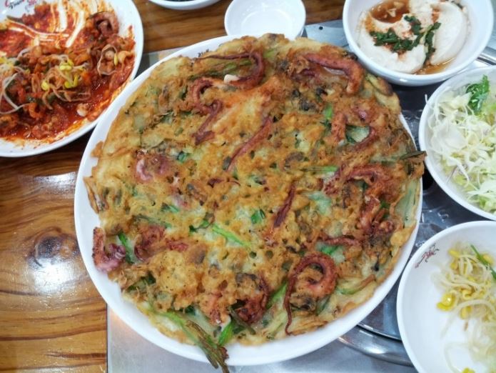 사이드메뉴로는 낙지해물파전이 딱 좋아요.