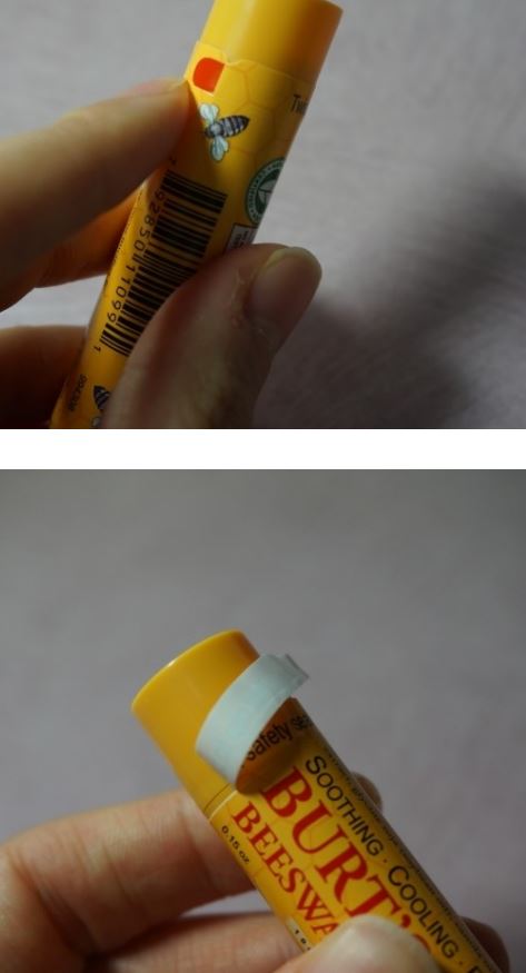 버츠비 립밤이 정말 마음에 드는 이유는 세이프 씰 라인을 제거해 주면 깔끔한 형태로 사용할 수 있다는 점이에요. 다른 립밤의 경우 윗부분에 껍질이 벗겨져서 너덜너덜해진 상태로 사용해야 해서 거추장스러웠는데 버츠비 비즈왁스 립밤은 깔끔하게 쓸 수 있어서 좋습니다.
