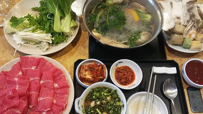 채소를 먼저 넣어주고 고기는 넣었다가 재빠르게 꺼내어 먹으면 질기지 않은 부드러운 식감의 고기, 특제 소스에 살짝만 찍어 먹어도 맛이 살았습니다.