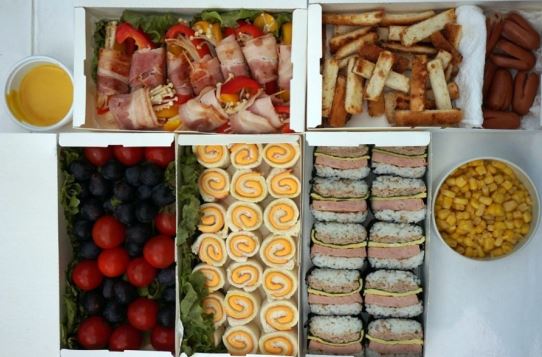 에버랜드 도시락 메뉴로는 햄치즈샌드, 참치마요스팸김밥, 베이컨말이, 소시지구이, 러스크, 과일로 준비를 했습니다.