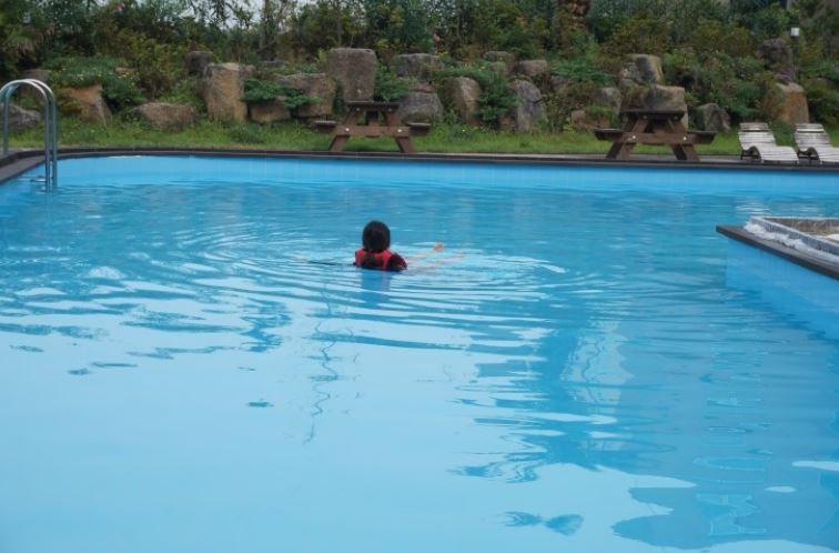 리조트 뒷쪽으로는 수영장이 있고 정해진 시간에 이용이 가능합니다. 어둡지 않게 켜놓은 조명이 분위기도 조화롭게 해 주었고 투숙객이 많지 않았던 때라 한적하게 수영을 할 수 있어서 좋았습니다.